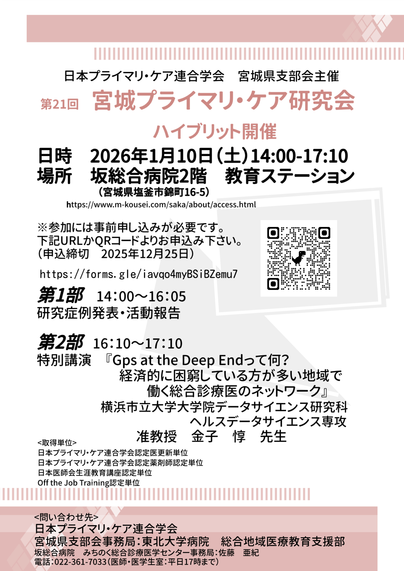 開催形式:ハイブリッド開催(現地:塩釜市錦町16-5坂総合病院2階 教育ステーション)