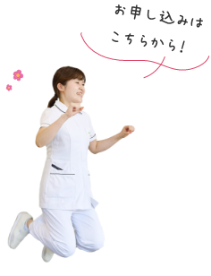 選考方法:願書等必要な書類を提出→看護部長と面接→健康診断を受けていただき総合して決定致します。